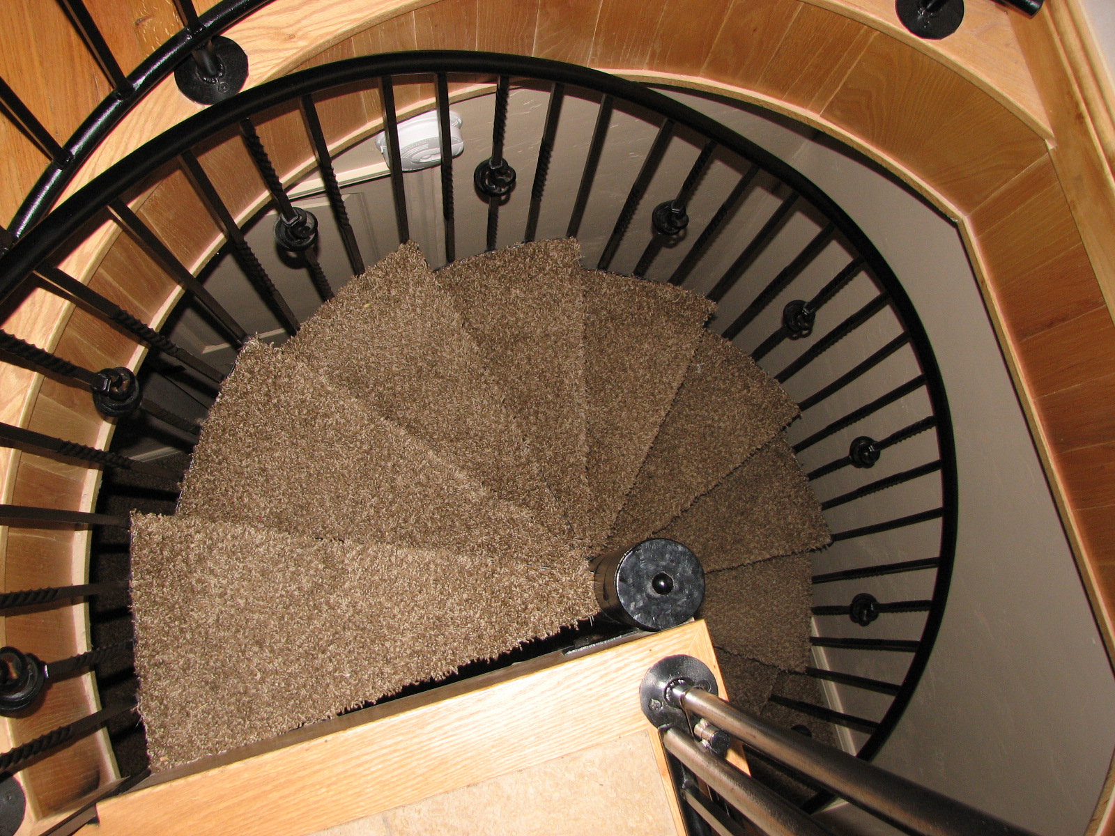 The 1st thing you might notice is the light fixture as I did , or you may be more likely to notice the picture window that over looks the back yard as Krik did. Either way you will pass by the coolest feature of the front room the spiral stair case.