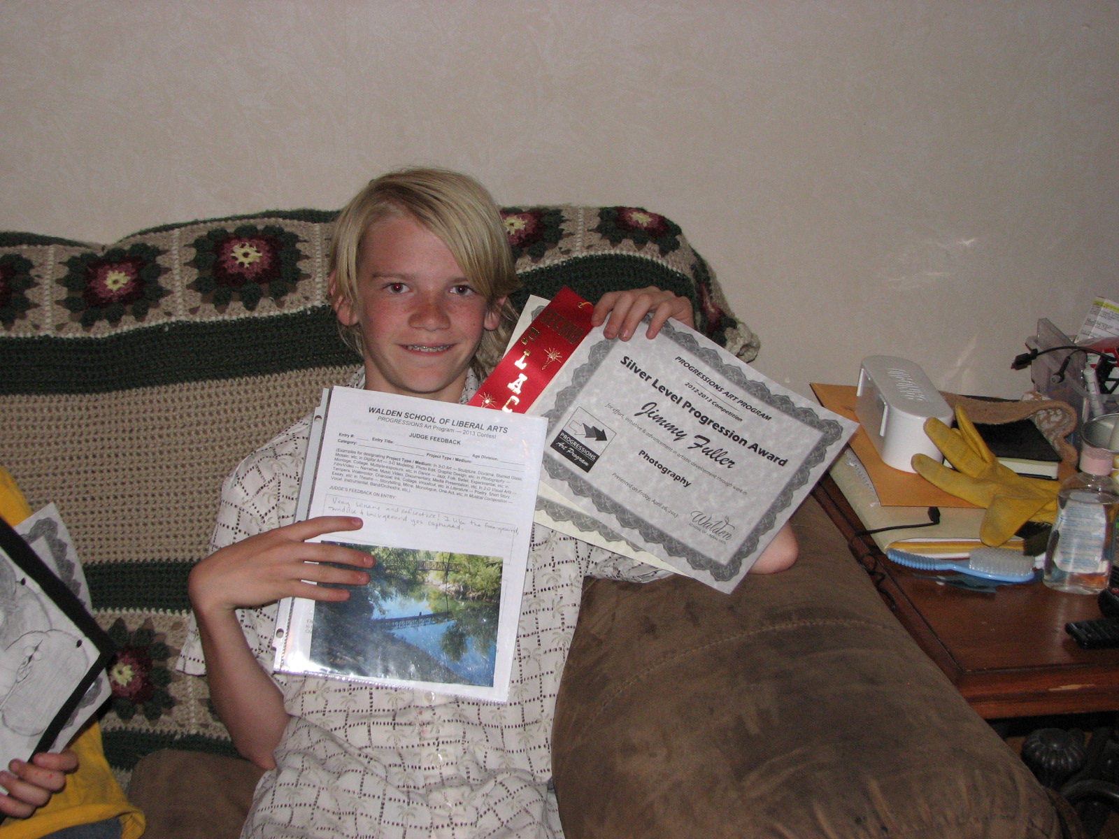 Jimmy took 2nd in his age group for photography. He also go the Silver Award for Progression. It was a great thing for him. He took a picture of a pipe over the river that was reflected just right. He entered it under the name of "reflections".