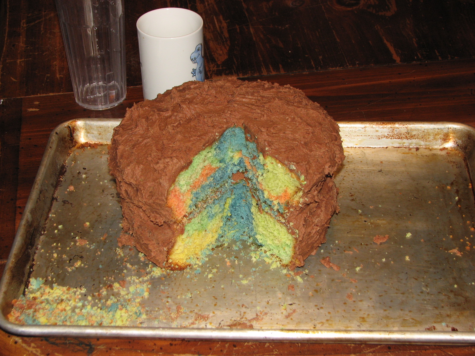 Byron had his blue and gold banquet for Cub Scouts this month as well. He had to make a cake for dessert that night. He decided to make a tie dye cake from scratch. He made a white cake and colored it. Baked it and frosted it. Loved it too.