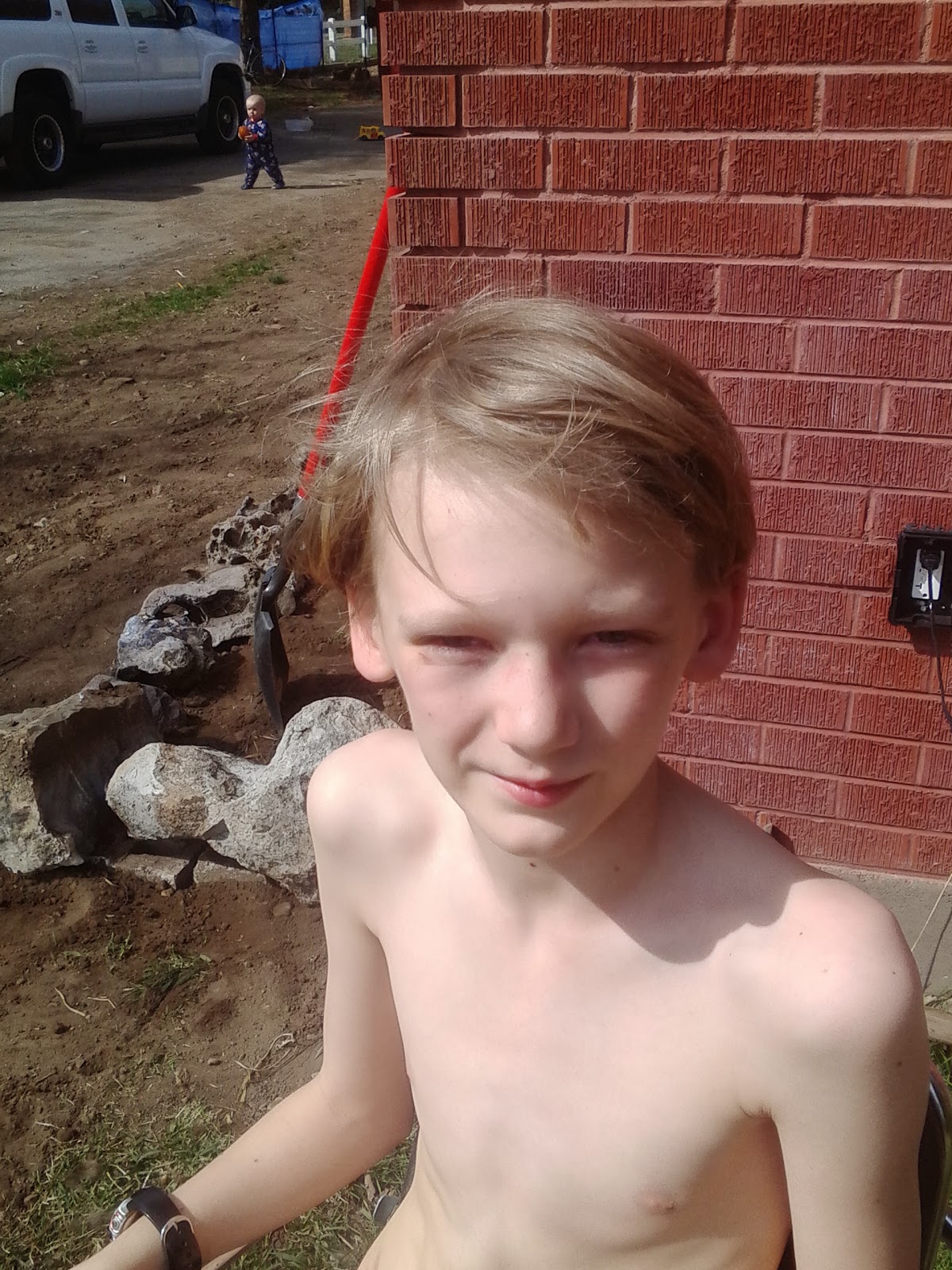The next thing we worked on was getting the garden started. Here you see a start. The boys could not wait to start planting. Jimmy put in our tomato's (Covered of course by the homemade green house), Cole put in the Peas and Beans, Kanyon in Winter Squash, and Byron Will put in lettuce once we figure out where it should be. Each of the boys are responsible for those plants the rest of the year. Krik also planted Red Onions and a few types of potatoes. We are so lucky to have so much space to build our garden area. It would not be the Myers Garden if we did not have up our mannequins protecting the garden as well.